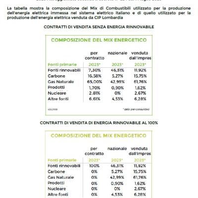 COMPOSIZIONE DEL MIX ENERGETICO 2024 Mix aggiornato secondo il decreto n° 224 del 14 luglio 2023
