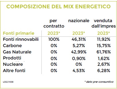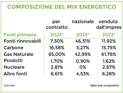COMPOSIZIONE DEL MIX ENERGETICO 2023